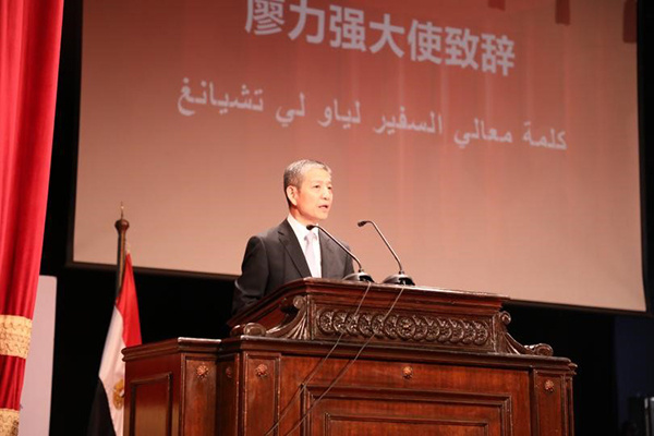 圖為中國駐埃及大使廖力強致辭。人民網(wǎng)記者 沈小曉攝 |