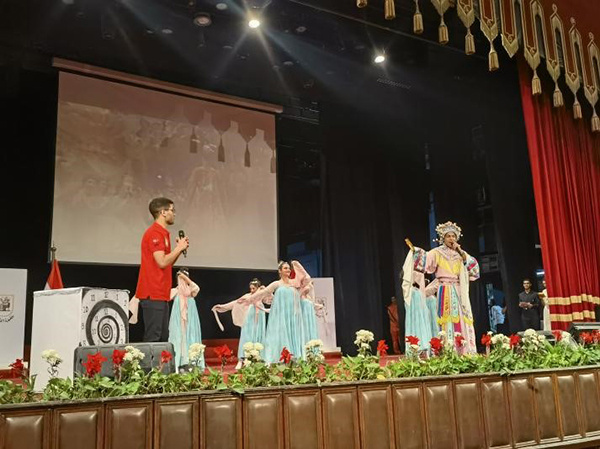 此次比賽分成中學(xué)本土教師、高校本土教師與高校中國教師三個賽道,來自二十三所高校三十余名教師參賽。典禮上,來自開羅大學(xué)、蘇伊士運河大學(xué)等學(xué)校的學(xué)生們表演了小品、詩朗誦和武術(shù)等。同學(xué)們的精神面貌贏得全場觀眾熱烈的掌聲。