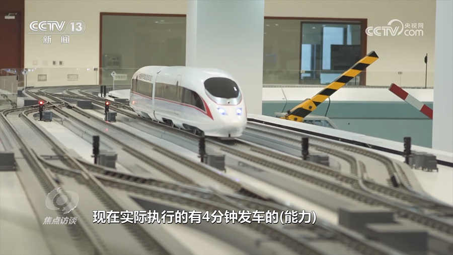中國(guó)通號(hào)研究設(shè)計(jì)院集團(tuán)副總工程師江明:“我們要保證所有的車(chē)在一條線路上能夠安全,同時(shí)又比較密集地運(yùn)行。我們可以實(shí)時(shí)知道現(xiàn)在車(chē)所在的位置,同時(shí)還能知道車(chē)現(xiàn)在的速度。經(jīng)過(guò)這么多年的努力,現(xiàn)在實(shí)際執(zhí)行的有4分鐘發(fā)車(chē)的能力?!?
