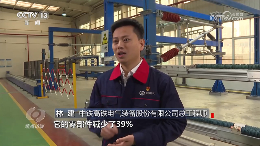 中鐵高鐵電氣裝備股份有限公司總工程師林建:“簡(jiǎn)統(tǒng)化腕臂裝置相對(duì)于傳統(tǒng)的鋁合金三角腕臂裝置來(lái)說(shuō),它的零部件減少了39%,在運(yùn)營(yíng)過(guò)程中,在同等滿足系統(tǒng)使用要求情況下,零部件越少,故障率越小,安全可靠性就會(huì)更高?!?