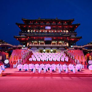2023年1月24日,西安大唐芙蓉園內(nèi)上演的舞臺(tái)劇《鼓》。新華社記者 劉瀟 攝
