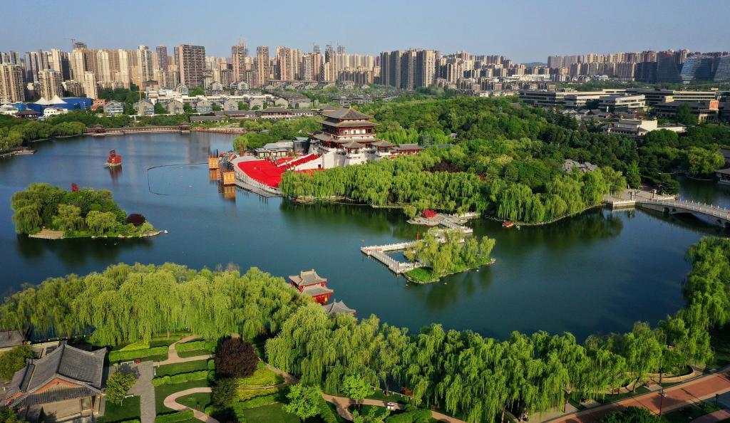 2023年4月25日的西安大唐芙蓉園(無(wú)人機(jī)照片)。新華社記者 劉瀟 攝