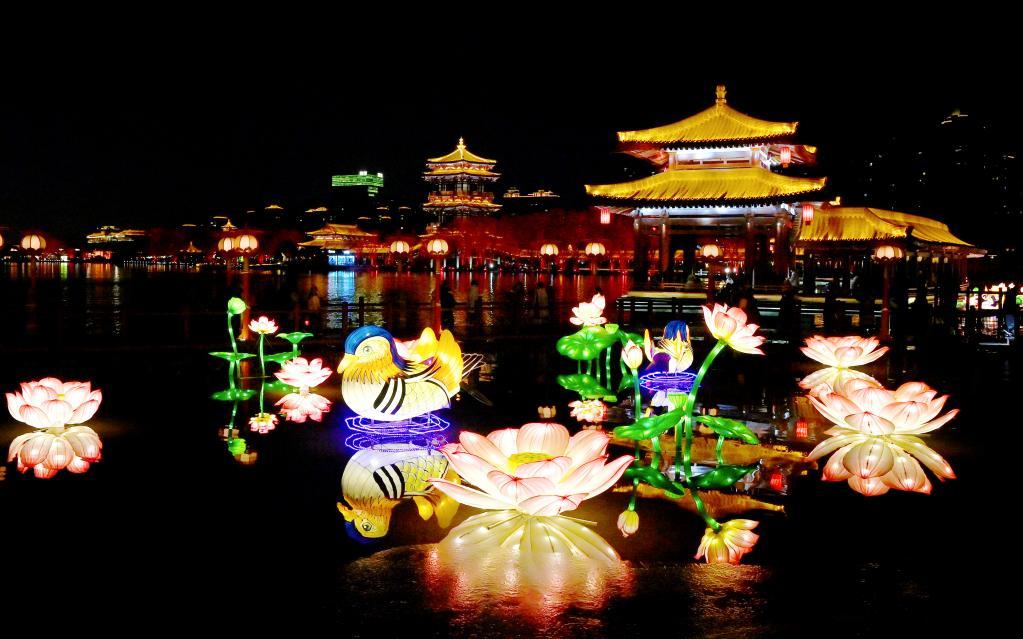 2023年1月24日在西安大唐芙蓉園拍攝的花燈(無(wú)人機(jī)照片)。新華社記者 劉瀟 攝