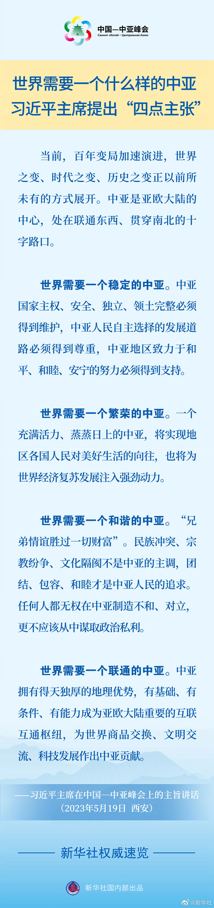 5月19日,國家主席習近平在中國—中亞峰會上發(fā)表主旨講話,就世界需要一個什么樣的中亞,闡明中國主張。