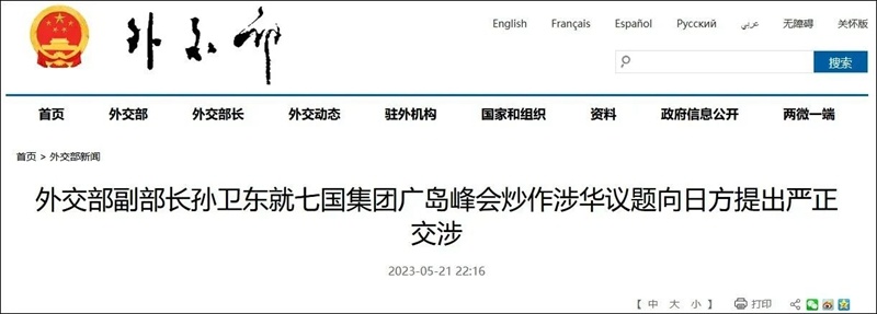 針對日本在G7峰會上操弄涉華議題,中國外交部副部長孫衛(wèi)東21日召見日本駐華大使垂秀夫提出嚴正交涉。