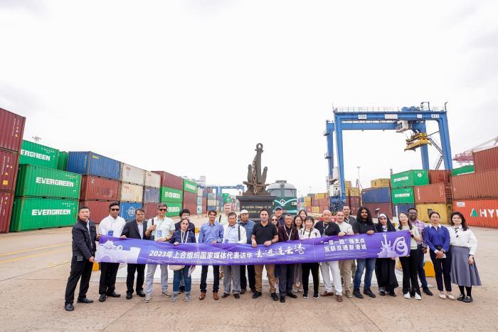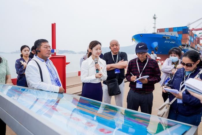 當(dāng)?shù)貢r間2023年5月25日,上合國家媒體代表參觀連云港港。(環(huán)球網(wǎng)供圖)