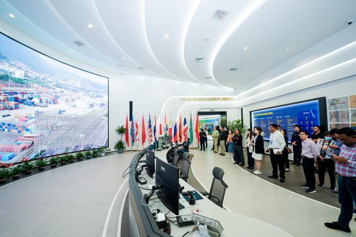 參訪過程中,上合國家媒體代表紛紛提問?!坝袥]有運(yùn)往東南亞的線路?”“運(yùn)往卡塔爾的線路都有什么貨物?”連云港港口控股集團(tuán)新聞中心副主任楊開林一一解答。