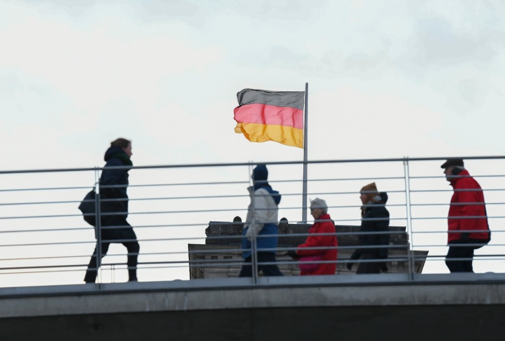 1月13日,人們行走在德國柏林一座橋上。新華社記者任鵬飛攝