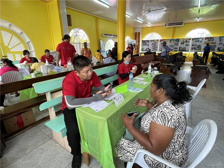 本次義診活動(dòng)持續(xù)約4個(gè)小時(shí),共接診群眾近百余人次,受到當(dāng)?shù)孛癖姷臒崃覛g迎,阿里總統(tǒng)本人也對(duì)醫(yī)療隊(duì)和義診行動(dòng)給予高度評(píng)價(jià)。醫(yī)療隊(duì)隊(duì)長褚薛慧表示,此次義診活動(dòng)是援圭醫(yī)療隊(duì)派遣30周年紀(jì)念活動(dòng)的重要組成部分,后續(xù)醫(yī)療隊(duì)還將深入圭亞那邊遠(yuǎn)貧困地區(qū)開展更多巡診義診,造福更多當(dāng)?shù)匕傩?,讓中國援外醫(yī)療金字招牌深入圭亞那民眾之心。