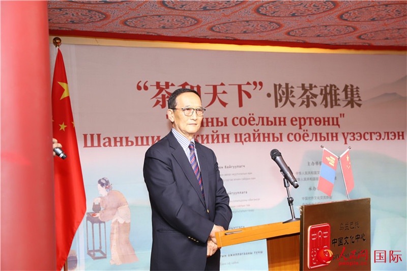 巴特蘇赫在致辭中表示,茶是中國送給世界的禮物,為蒙中兩國之間的交流互鑒搭起了一座橋梁。希望通過本次活動,能夠讓更多的蒙古國人民了解到中國獨特的茶文化,了解到陜西悠久燦爛的歷史和文化,衷心祝愿蒙中兩國的友誼萬古長青。