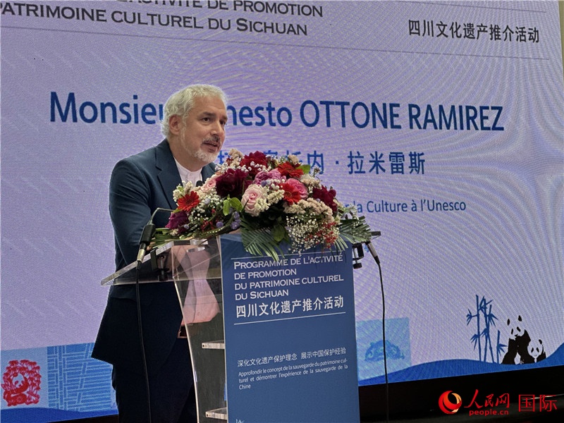 人民網(wǎng)巴黎5月30日電 (記者劉玲玲)當(dāng)?shù)貢r(shí)間30日下午,由四川省人民政府新聞辦公室、四川省文化和旅游廳、四川省文物局、四川日?qǐng)?bào)報(bào)業(yè)集團(tuán)主辦的四川文化遺產(chǎn)推介活動(dòng)在法國巴黎吉美亞洲藝術(shù)博物館成功舉行,旨在通過現(xiàn)場(chǎng)推介、主題展覽等多種形式持續(xù)加強(qiáng)四川與歐洲國家在文化遺產(chǎn)發(fā)展領(lǐng)域的交流合作。法國前總理讓-皮埃爾·拉法蘭、聯(lián)合國教科文組織文化助理總干事埃內(nèi)斯托·奧托內(nèi)·拉米雷斯、中國駐法國大使館公使陳力及百余位法國學(xué)界、文化界代表出席活動(dòng)。