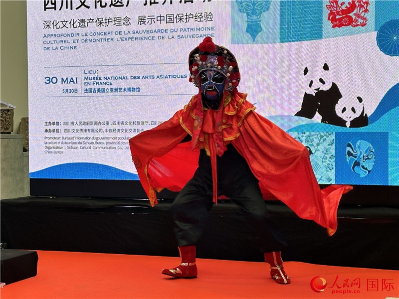 推介活動(dòng)現(xiàn)場(chǎng)進(jìn)行川劇變臉表演。人民網(wǎng)記者 劉玲玲攝 |