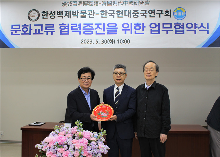 金學(xué)俊在簽約儀式上表示,此次簽約將以韓國(guó)現(xiàn)代中國(guó)研究會(huì)和漢城百濟(jì)博物館相互信任、互利合作為基礎(chǔ),積極有效地增進(jìn)雙方合作。