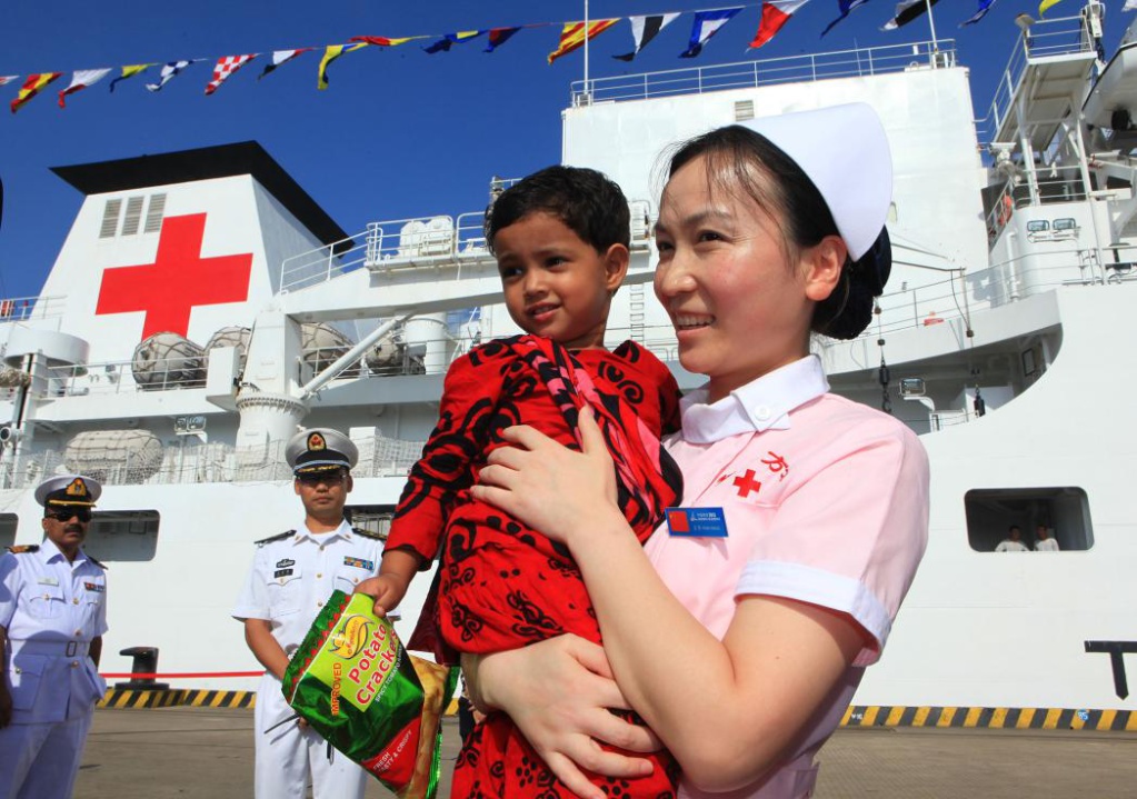 2010年,中國(guó)海軍“和平方舟”號(hào)醫(yī)院船首次來(lái)到孟加拉國(guó)吉大港開展免費(fèi)醫(yī)療服務(wù)時(shí),一名患有先天性心臟病的高危產(chǎn)婦即將分娩,一度生命垂危。接到求助后,醫(yī)院船第一時(shí)間派出軍醫(yī)赴當(dāng)?shù)蒯t(yī)院,頂著巨大壓力進(jìn)行剖腹產(chǎn)手術(shù),最終母女平安。為表感激,孩子的父親為其起名“沁”(Chin),孟語(yǔ)意思為“中國(guó)”。