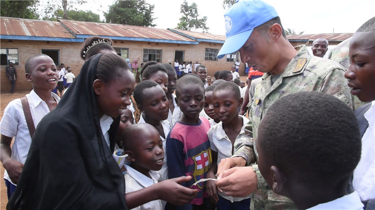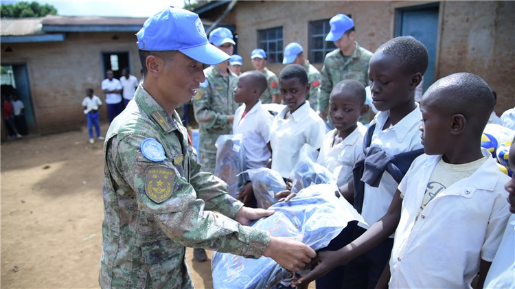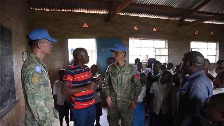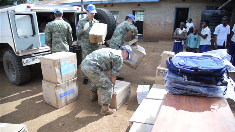 “謝謝中國維和軍人的幫助,給我們帶來了很多學(xué)習(xí)用品,愿中剛友誼長存?!瘪v地Cituzo小學(xué)校長說道。
