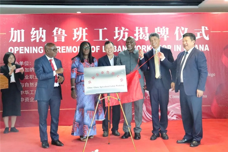 中國駐加納大使盧坤(左四)出席加納魯班工坊揭牌儀式。駐加納使館供圖