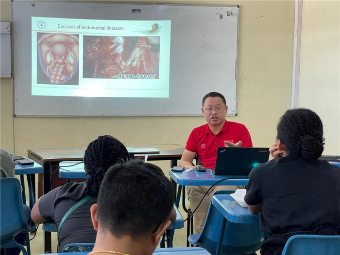醫(yī)療隊隊員授課現(xiàn)場。第18期援圭亞那醫(yī)療隊供圖 |