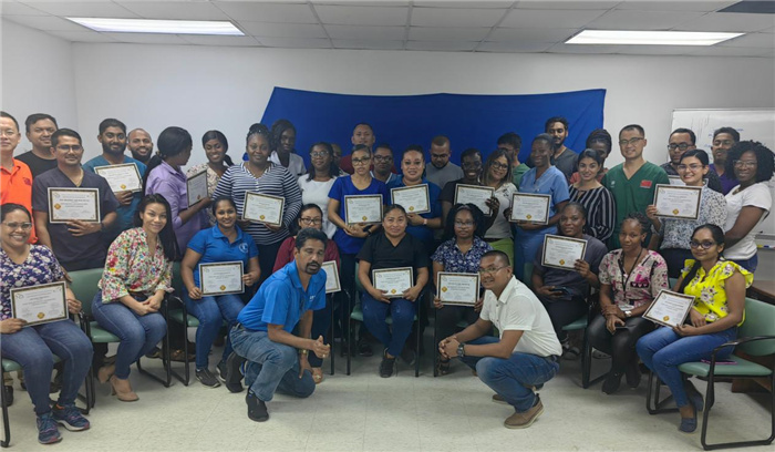 培訓(xùn)結(jié)束后培訓(xùn)醫(yī)療隊員與全體學(xué)員合影。第18期援圭亞那醫(yī)療隊供圖 |