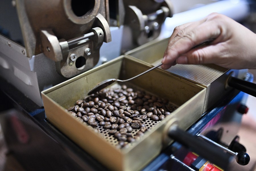 5月6日,在洪都拉斯馬爾卡拉的一家咖啡工廠,工人查看經(jīng)過烘焙的咖啡豆。洪都拉斯的自然條件非常適合咖啡種植,是中美洲主要咖啡出口國之一。新華社記者辛悅衛(wèi)攝
