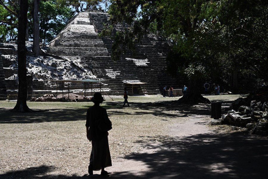 4月1日,游客在洪都拉斯科潘瑪雅古城遺址內(nèi)參觀。中洪在當(dāng)?shù)卣归_考古合作。新華社記者辛悅衛(wèi)攝