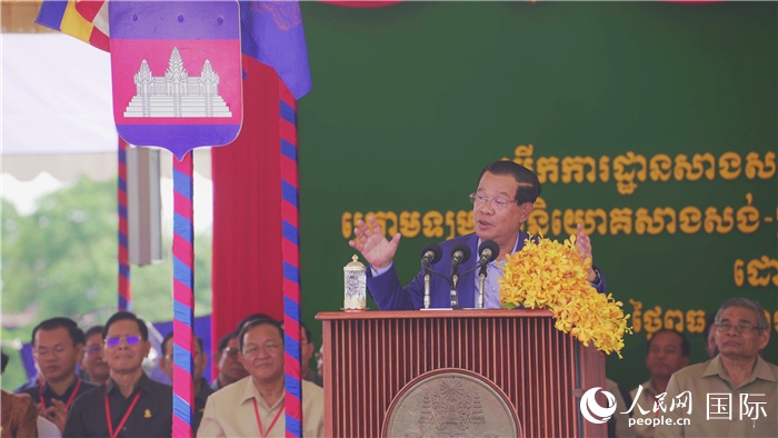 柬埔寨首相洪森參加金巴高速項(xiàng)目開(kāi)工儀式。人民網(wǎng)記者 趙益普攝