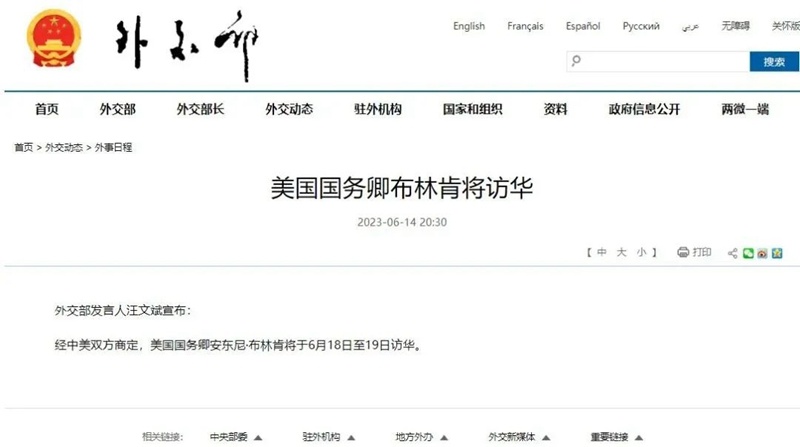 來看這條短消息:經(jīng)中美雙方商定,美國國務(wù)卿安東尼·布林肯將于6月18日至19日訪華。外交講的是細(xì)節(jié),“經(jīng)中美雙方商定”,這幾個(gè)字意味深長……