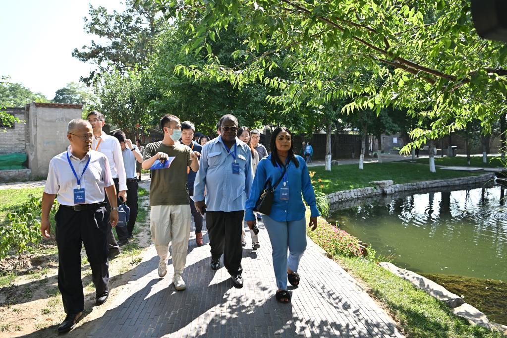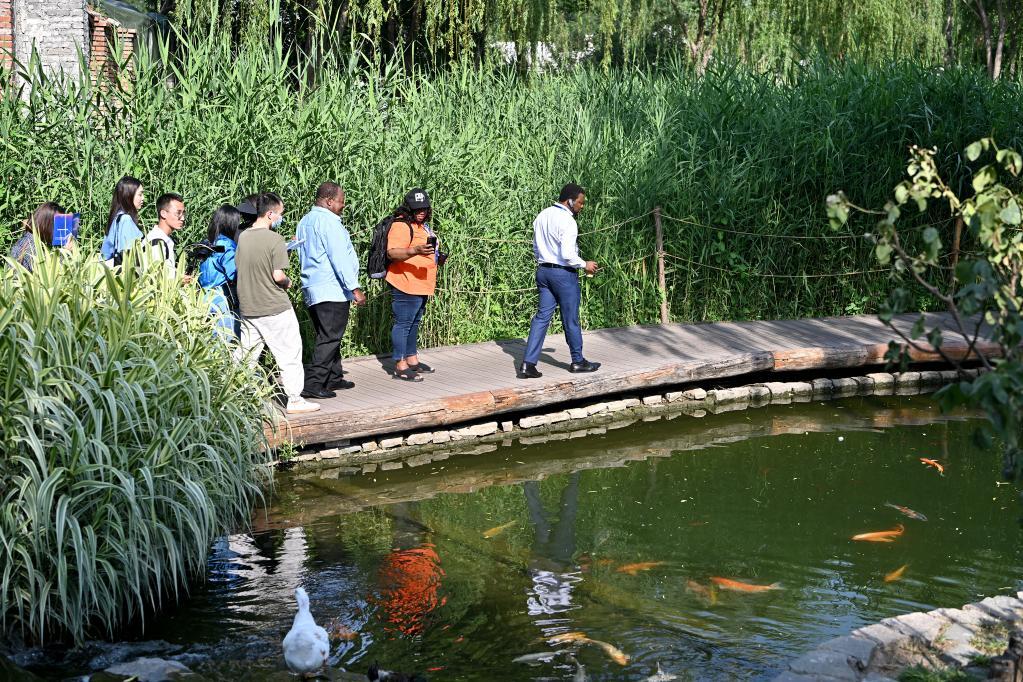 外賓參觀北京前門(mén)三里河公園。新華社記者 李鑫 攝