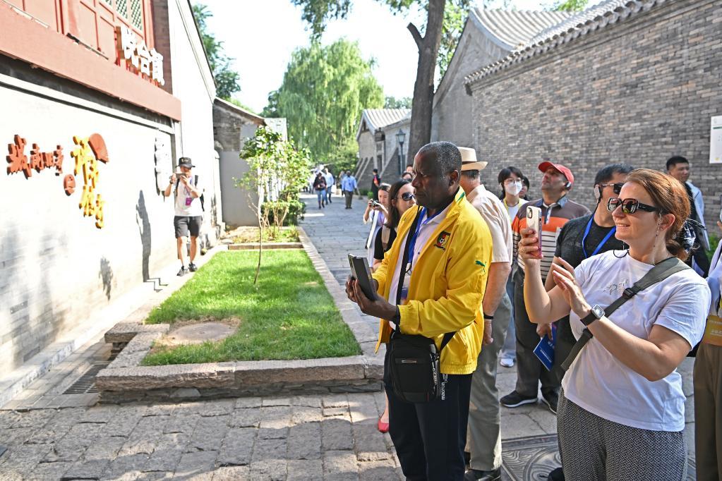 6月15日下午,出席全球人權(quán)治理高端論壇的外賓分批前往北京市東城區(qū)前門(mén)三里河公園、顏料會(huì)館、青云貳拾叁藝術(shù)中心、羅嵐書(shū)店等地參訪,體驗(yàn)北京老城區(qū)歷史文化保護(hù)與創(chuàng)新。
