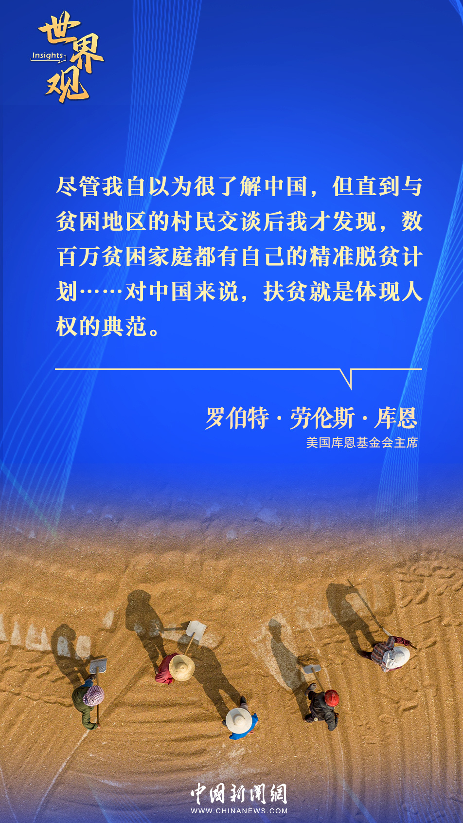 美國庫恩基金會主席羅伯特·勞倫斯·庫恩則表示,中國的精準脫貧計劃,對各國脫貧和促進人權工作具有借鑒意義。