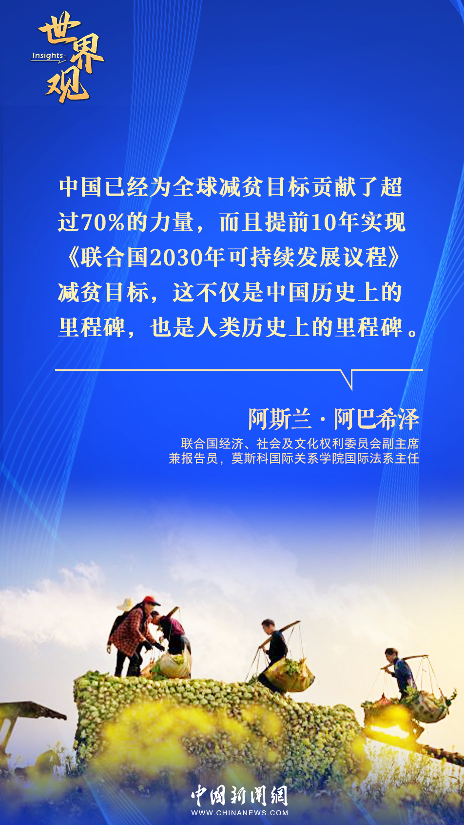 聯(lián)合國經濟、社會及文化權利委員會副主席兼報告員,莫斯科國際關系學院國際法系主任阿斯蘭·阿巴希澤高度評價中國減貧成就,稱其樹立了新的歷史豐碑。