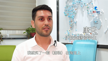 伊拉克留學(xué)生康天穿上喜氣洋洋的唐裝后 笑得很自信