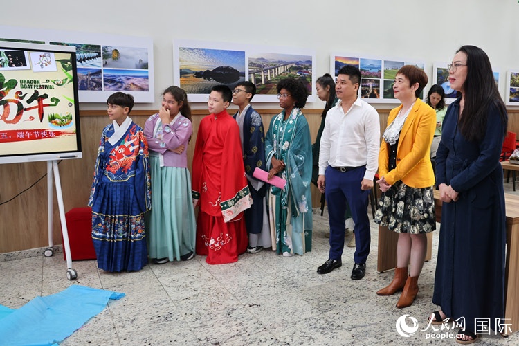人民網(wǎng)里約熱內(nèi)盧6月19日電 (記者時(shí)元皓、宋亦然)“五月五,過端午,劃龍舟,敲大鼓……”當(dāng)?shù)貢r(shí)間6月19日,在音樂的伴奏下,穿著中國傳統(tǒng)服飾的小朋友在里約中國國際學(xué)校的小禮堂中齊聲唱著關(guān)于端午節(jié)的兒歌。這是該校舉辦的慶祝端午節(jié)活動(dòng)的一個(gè)場景。中國駐里約熱內(nèi)盧總領(lǐng)事田敏,該校校董會(huì)董事長、巴西中國浙江商會(huì)會(huì)長鄭俠茂等出席活動(dòng)。