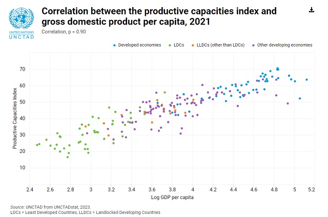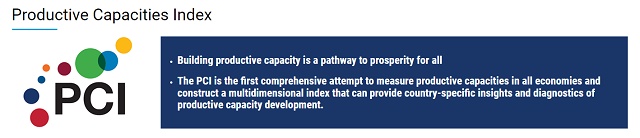 PCI描繪了194個(gè)經(jīng)濟(jì)體的生產(chǎn)能力,UNCTAD認(rèn)為,與GDP等其他傳統(tǒng)標(biāo)準(zhǔn)相比,PCI衡量的不是產(chǎn)出,而是經(jīng)濟(jì)投入和潛力,為國(guó)家的發(fā)展提供了更好、更多維的衡量標(biāo)準(zhǔn)。