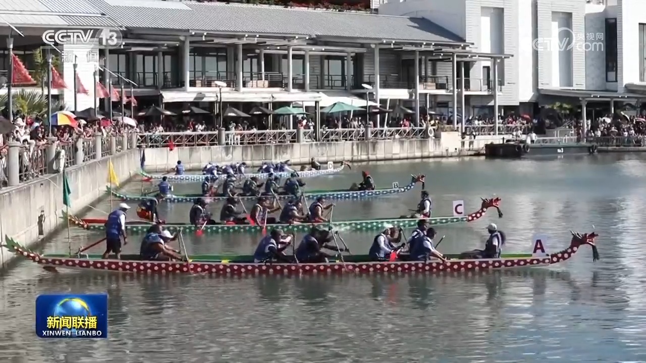 在毛里求斯首都路易港舉行的龍舟比賽已經(jīng)是第15屆了,8支隊(duì)伍、96名選手參加比賽,上千名觀眾一同為選手們加油助威。