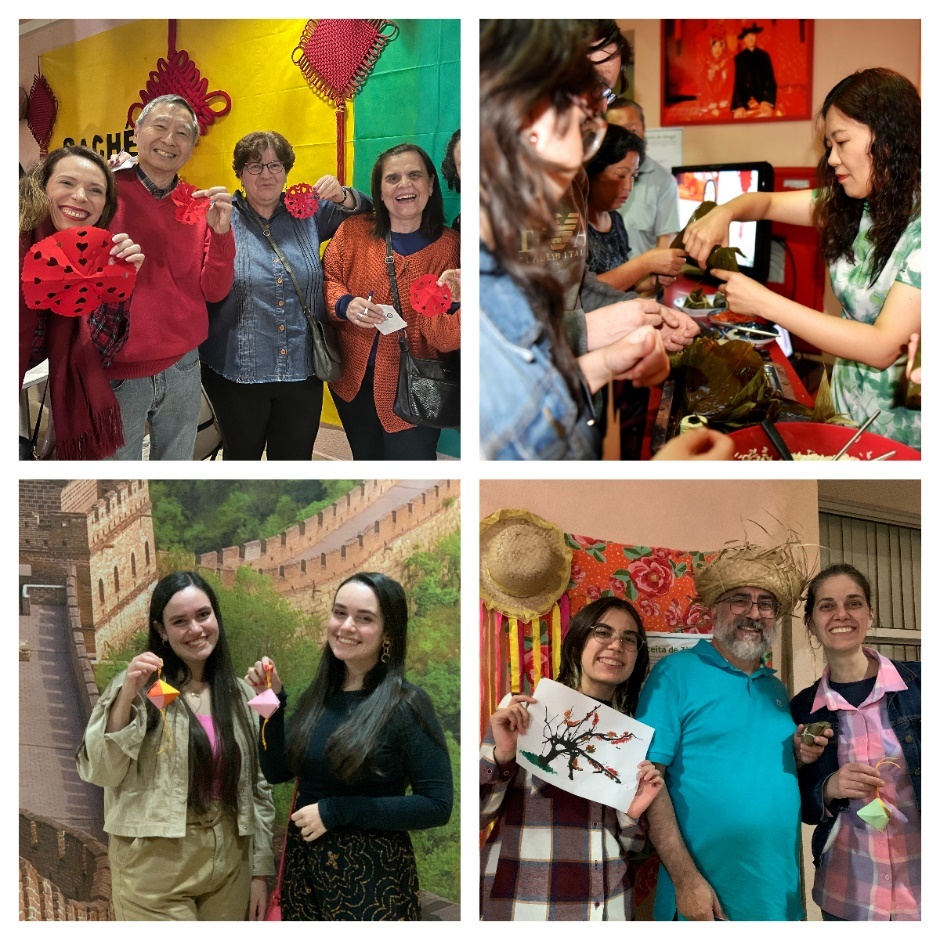 本次活動既有包粽子、做香包等端午習俗體驗,又有巴西豐收節(jié)的各種特色美食品嘗;既有來自中國的公派教師演唱巴西民歌,又有來自巴西的孔院學生唱響中國情歌;既有孔子學院全體中方人員帶來的旗袍秀和舞蹈,又有巴西學員戴著草帽、穿著淳樸的本土服飾跳四方舞;既有“保衛(wèi)粽子”的拔河比賽也有活潑有趣的競猜游戲……既體現(xiàn)了巴西的風土人情,也展現(xiàn)了中華傳統(tǒng)文化的魅力。在場參與者在歡度巴西節(jié)日的同時,零距離接觸中國元素,在輕松愉快的氛圍中體驗文化交融的樂趣。