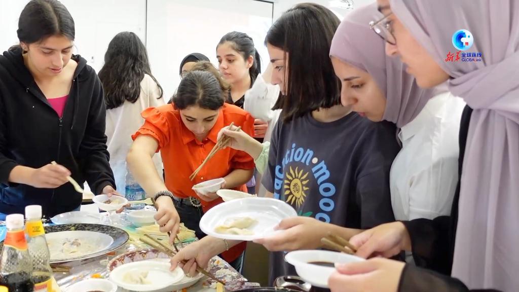 在希伯來大學學生志愿者的引導下,阿拉伯中學生感受了包餃子的樂趣并品嘗自己現學現包的餃子,沉浸式地體驗“舌尖上的中國文化”。