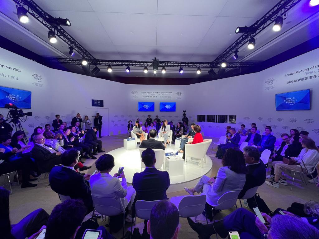 第十四屆夏季達沃斯論壇現(xiàn)場。新華社記者李鑫 攝