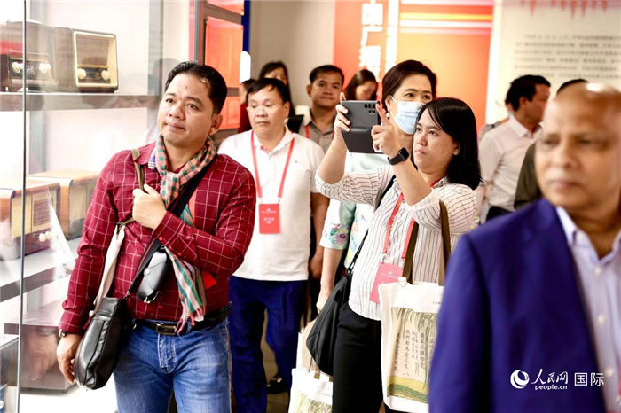 6月28日,瀾湄合作媒體峰會研修班成員參觀中國傳媒大學(xué)校史館——傳媒博物館。人民網(wǎng) 李世奇攝 |