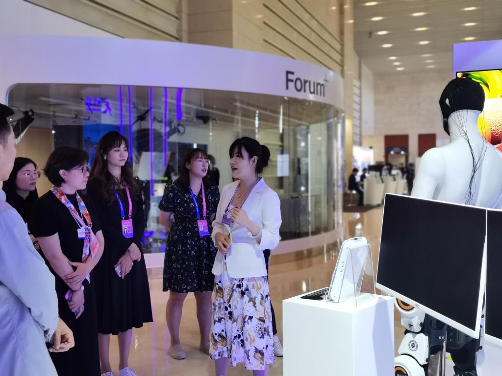 在天開高教科創(chuàng)園陳列區(qū),講解員正在講解高科技產品。新華社記者劉惟真 攝