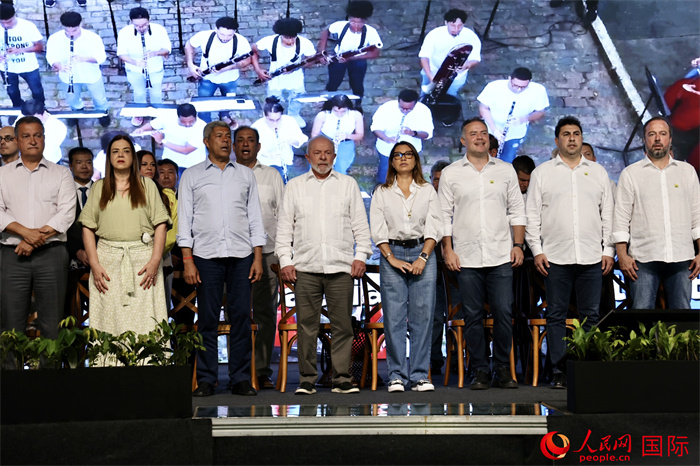 巴西總統(tǒng)盧拉與中國和巴西企業(yè)代表、巴西政府官員合影。人民網(wǎng)記者 宋亦然攝 |
