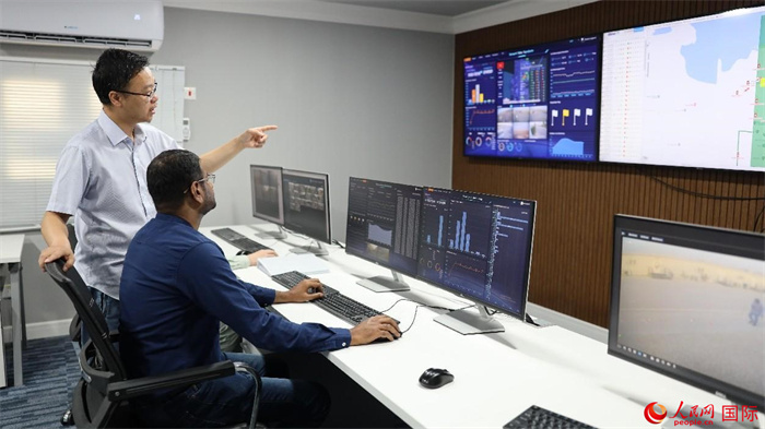 人民網(wǎng)沙特達(dá)曼7月4日電 (記者管克江)早上7點(diǎn)多,中國(guó)電建所屬山東電建承建的沙特薩勒曼國(guó)王國(guó)際綜合港務(wù)設(shè)施項(xiàng)目部(簡(jiǎn)稱沙特國(guó)王港項(xiàng)目)的文件信息中心控制室里,管理員奧拜德正遠(yuǎn)程操作著攝影頭,檢查工地工作人員遵守安全規(guī)范的情況。