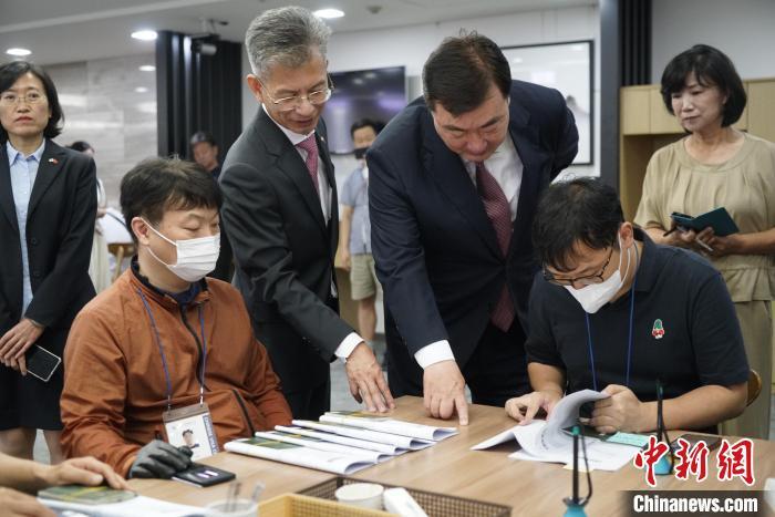 中新社首爾7月7日電 (記者 劉旭)當(dāng)?shù)貢r(shí)間7日,中國(guó)駐韓國(guó)大使邢海明赴首爾中國(guó)簽證申請(qǐng)服務(wù)中心調(diào)研,了解中心運(yùn)營(yíng)情況,慰問中心工作人員,并同現(xiàn)場(chǎng)簽證申請(qǐng)人親切交流。使館領(lǐng)僑處公參鐘洪糯陪同。