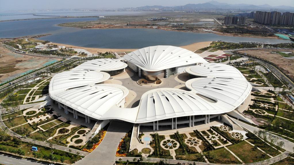 位于中國(guó)-上海合作組織地方經(jīng)貿(mào)合作示范區(qū)的青島·上合之珠國(guó)際博覽中心。新華社記者 李紫恒 攝