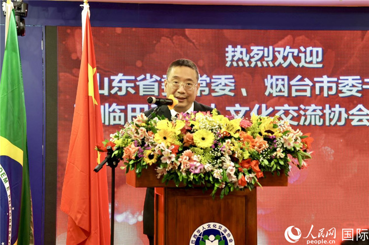 巴西華人文化交流協(xié)會主席上官建峰致辭。人民網(wǎng)記者 宋亦然 攝