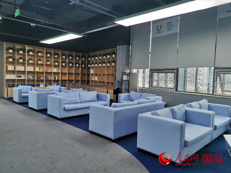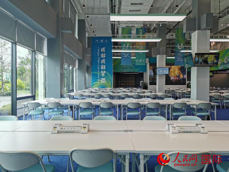 成都大運(yùn)會主媒體中心露天平臺休閑區(qū)。人民網(wǎng)記者 符園園攝 |