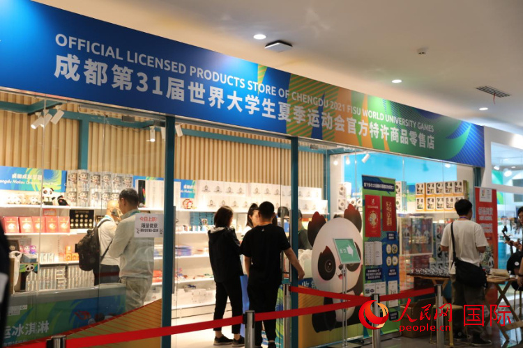 成都大運(yùn)會主媒體中心官方特許商品零售店。人民網(wǎng)記者 符園園攝 |