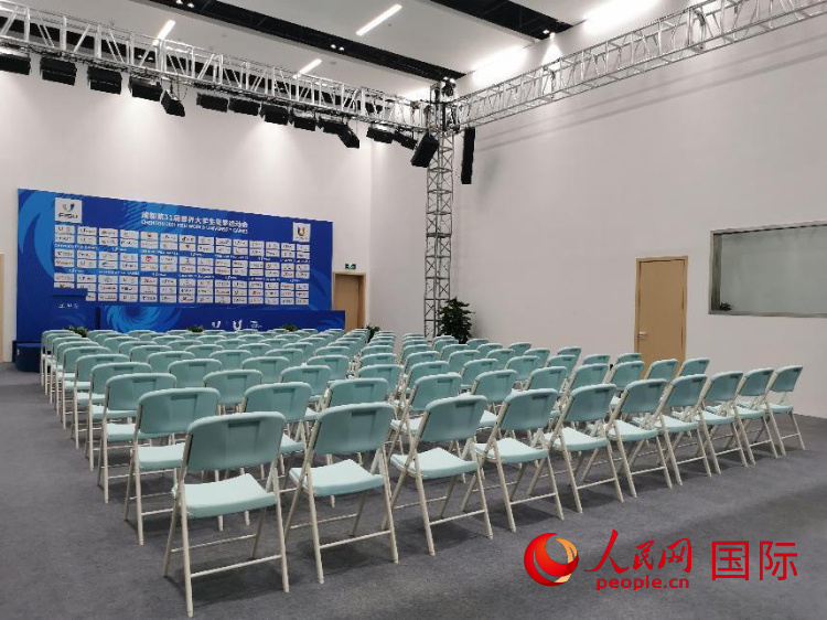 成都大運(yùn)會主媒體中心新聞發(fā)布廳“銀杏廳”。人民網(wǎng)記者 符園園攝 |