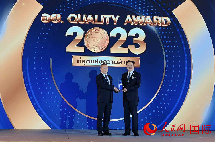 泰國副總理為中資企業(yè)代表頒發(fā)“最高質(zhì)量獎”。人民網(wǎng)記者 孫廣勇攝 |