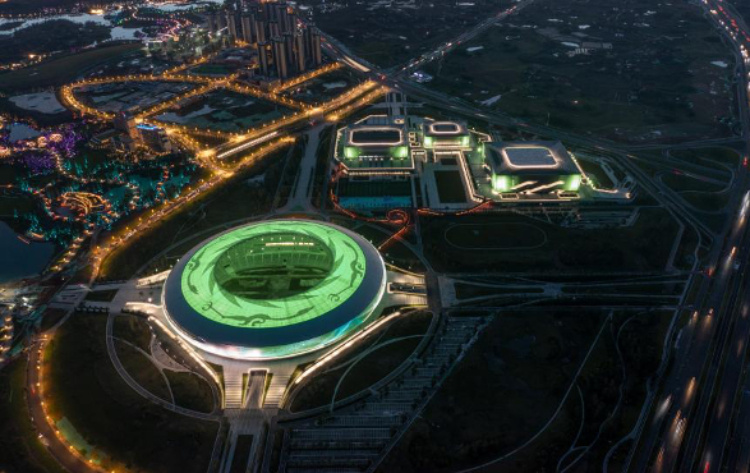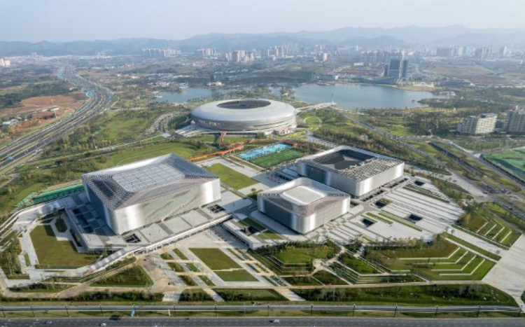 東安湖體育公園為成都大運(yùn)會的新建場館,總建筑面積約32萬平方米,占地5000畝,由“一場三館”組成,包含 4 萬座的主體育場、1.8 萬座的多功能體育館、4500 座的游泳跳水館和小球館。比賽期間,東安湖體育公園將承擔(dān)體操、游泳等重要項目賽事。