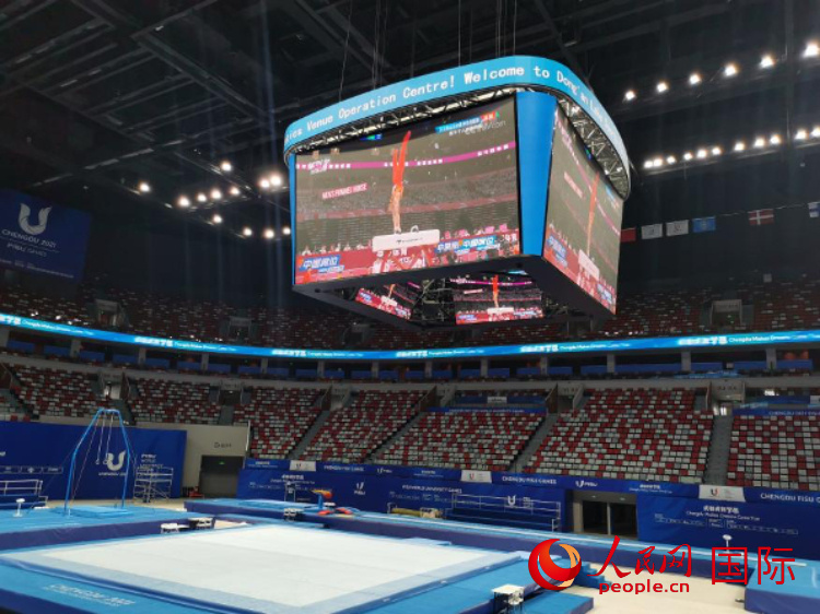 圖為東安湖體育公園小球館內(nèi)部。大運(yùn)會期間,小球館將主要作為體操項目的訓(xùn)練場地。人民網(wǎng)記者 符園園攝 |